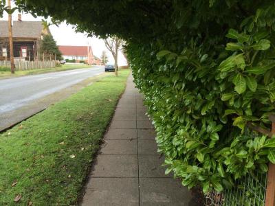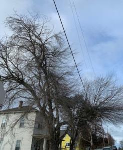 The above photos show a tall tree in the Power Lines, and an overgrown bush blocking the sidewalk.