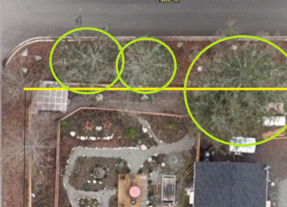The above photo shows trees on private property that still require a permit to remove.