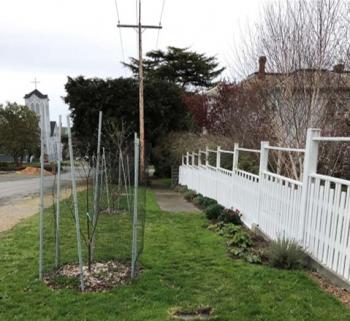 While permanent fences are prohibited in the right of way and must be located on the property, temporary protective fences may be used, for example, around small trees and landscaping to keep deer out until plants are established. (More detailed requirements may be found in PTMC12.04.075 section C.)
